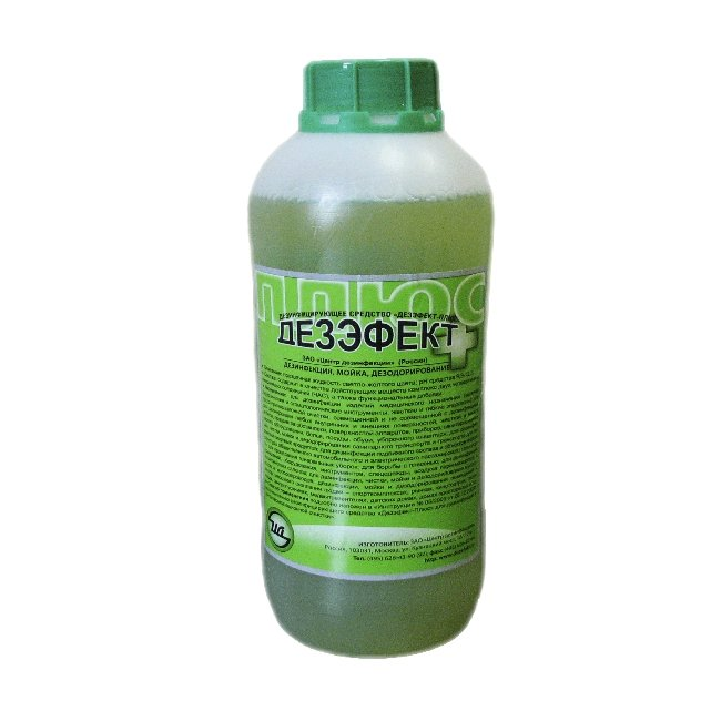 Cредство «Дезэфект-Плюс» представляет собой прозрачную жидкость светло-зеленого цвета с приятным запахом применяемой отдушки. Содержит в своем составе в качестве действующих веществ комплекс четвертично-аммониевых соединений (ЧАС) – алкилдиметилбензиламмоний хлорида и алкилдиметил (этилбензил) аммоний хлорида – суммарно 3%, а также функциональные добавки; рН средства 9,3-12,3. Средство «Дезэфект-Плюс» обладает антимикробной активностью в отношении грамотрицательных и грамположительных (включая микобактерии туберкулеза) микроорганизмов, вирусов (в отношении всех известных вирусов-патогенов человека, в том числе вирусов энтеральных и парентеральных гепатитов (в т.ч. гепатита А, В и С), ВИЧ, полиомиелита, аденовирусов, энтеровирусов, ротавирусов, вирусов «атипичной пневмонии» (SARS), «птичьего» гриппа H5N1, «свиного» гриппа А/H1N1, гриппа человека, герпеса и др.), грибов рода Кандида, Трихофитон и плесневых грибов, возбудителей гнойно-септических (кишечной и синегнойной палочки, стафилококка и др.) и других внутрибольничных инфекций, анаэробной инфекции. Средство характеризуется остаточным антимикробным действием.