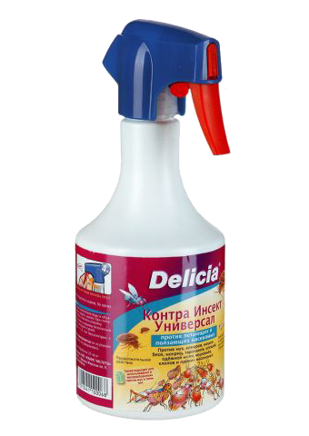 Препарат "Контра Инсект Универсальный"-высокоэффективный спрей для борьбы с любыми видами насекомых (мухами, комарами, мошками, тараканами, блохами, клопами, личинками моли и т.д.). Основные действующие вещества -перметрин и биоаллетрин.